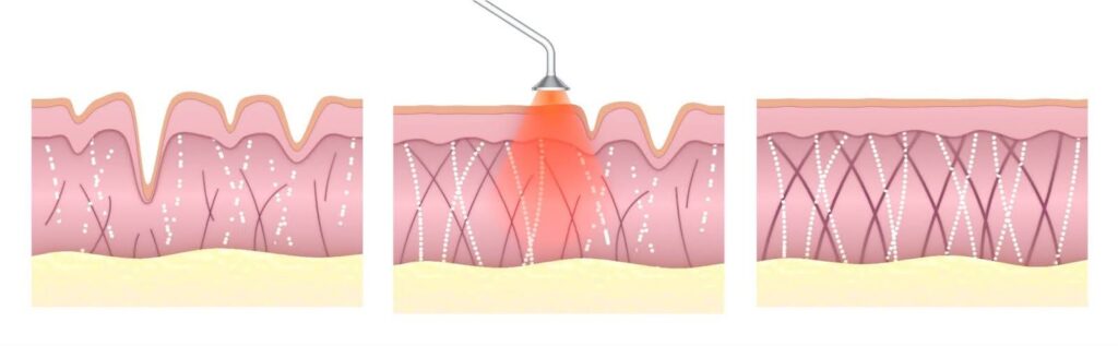 The ablative (destructive) part of the laser gets rid of unwanted debris and dead skin on the surface to reveal the brighter, healthier layer of skin below.
